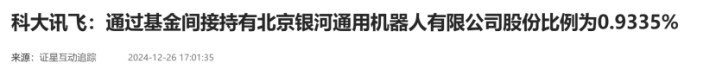 银河通用参股方:公司间接持有银河通用股份比例为0.9335%。