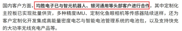 供应商:公司为全球车企及机器人企业提供大小脑控制器、能源管理模块、高性能机身机甲材料等关键零部件以及机器人头部总成、胸腔及底盘总成等软硬件一体化解决方案。已与银河通用合作