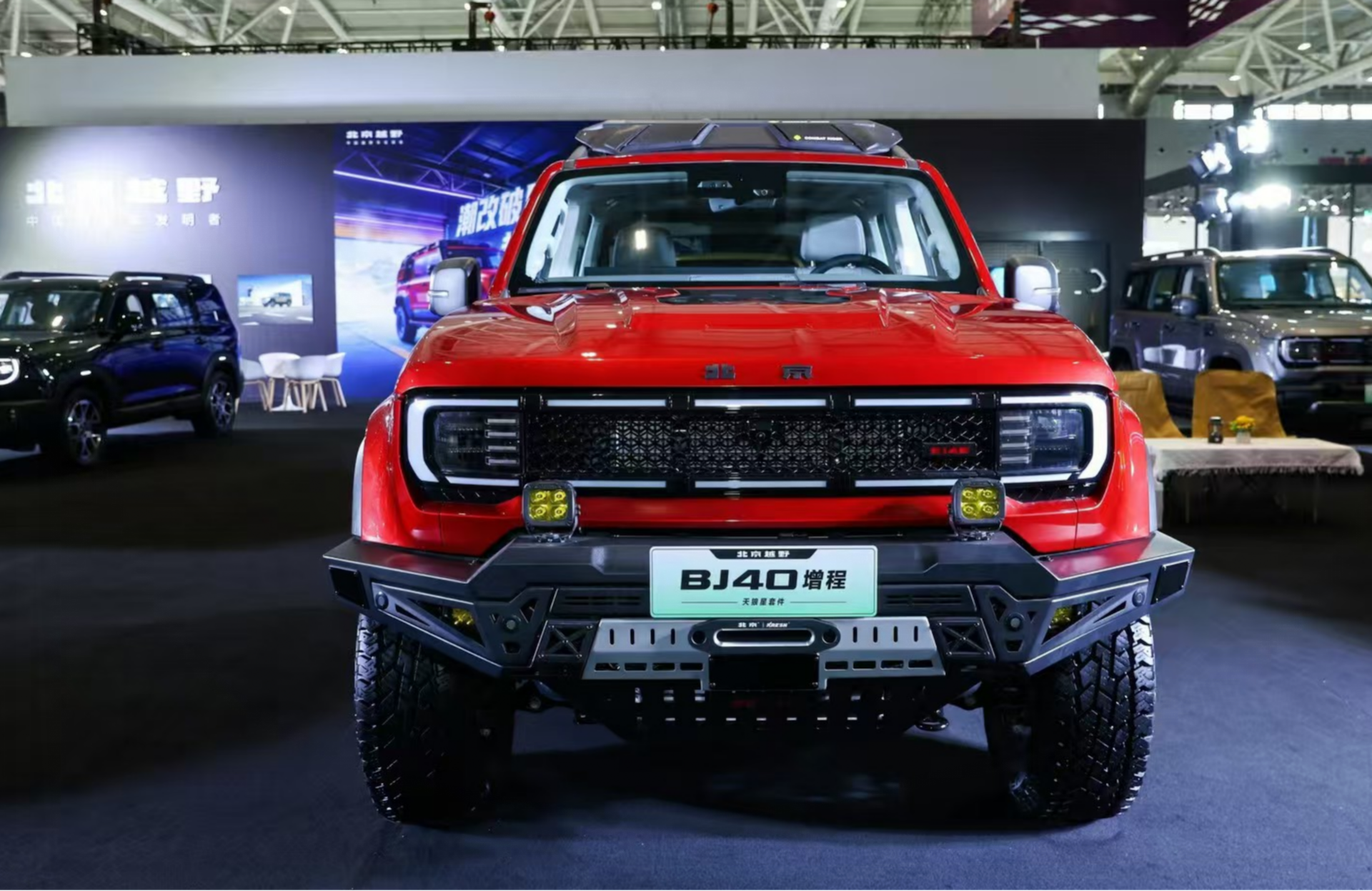 BJ40增程赤兔版是专为重度越野玩家打造的座驾,出厂自带深度越野改装套件,省去后期改装的繁琐与隐患。“赤兔红”配上专属拉花、扩充版轮眉、动感双“耳”尾翼,铝合金爬梯、侧挂包和固定踏板,实用装备直接配齐;配备高进气量涉水喉,涉水深度高达835mm;配备双向可调氮气减震器,征途不伤腰,远行不疲劳;全地形轮胎和三把差速锁,等等。